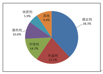 中藥注射劑報(bào)告數(shù)量排名前3位的藥品類別是理血?jiǎng)?,補(bǔ)益劑,開竅劑(圖13)。