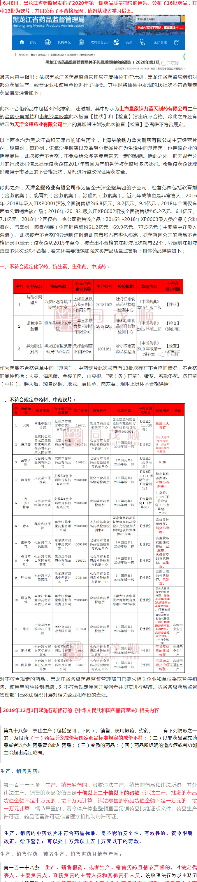 16批藥品(13批飲片)不合格,公布不合格原因,值得學習!